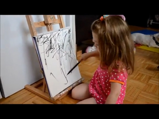 Мама-художник доделывает работы-картины 2-летней дочери