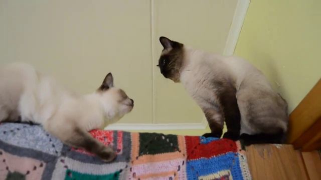 Тайская кошка и тайский кот выясняют, кто здесь царь горы #thaicats #cats #кошки #котята #тайскиекошки #животные #питомниктайскаялегенда #тайскиекотята