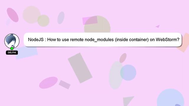 NodeJS : How to use remote node_modules (inside container) on WebStorm? To Access My Live Chat Page, On Google, Search for "hows tech developer connect" As promised, I have a hidden feature that I want to share with you. This is a YouTube's feature which works on Desktop. First, Ensure that the video is playing before proceeding. After that, type the word 'awesome' on your keyboard. The progress bar on YouTube will be altered to a flashing rainbow. A brief presentation of myself, Good day, I am Delphi. I am willing to help you find the solutions to your questions. NodeJS : How to use remote node_modules (inside container) on WebStorm? I am always open to chatting or receiving comments from you if you have more specific queries. We encourage you to leave a comment below if you have an answer or insights on the answer. I will express my appreciation for your answer by 'hearting' it. : NodeJS container) (inside How to node_modules on WebStorm? remote use