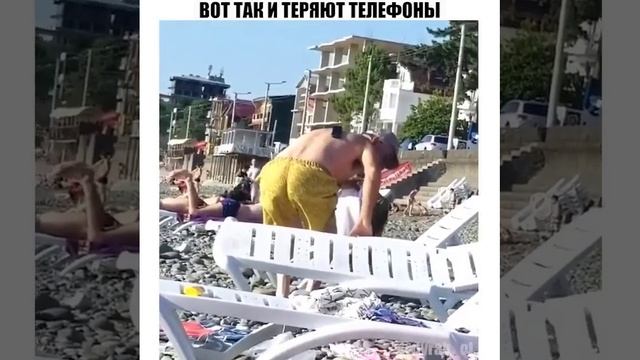 Парень отдыхал на пляже и уснул,телефон его упал за спину,когда он проснулся он не мог его найти.