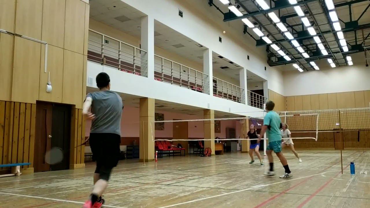 Тренировочная игра в бадминтон через сетку. Играют любители, новички и опытные бадминтонисты. Игра в Лестехе (МГУЛ ранее, сейчас называется филиалом Бауманки). Хочешь тоже играть? Приходи - https://badminton77.ru/map/4/ #badminton #badmintonlovers #badmintonrussia #lesteh #ЛесТех #бадминтон