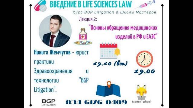19.10 в 19:00 состоялось очередное занятие в рамках курса: «Life Sciences Law». 🔎Тема лекции: «Основы обращения медицинских изделий в РФ и ЕАЭС». 🎙Кто читает? Никита Жемчугов, юрист практики Здравоохранение и технологии BGP Litigation. Вы познакомитесь: 📌С детальным разбором понятия медицинского изделия, его отличиями от иных смежных объектов Life Sciences; 📌С источниками правового регулирования обращения медицинских изделий. Единым рынком медицинских изделий ЕАЭС; 📌С особенностями регулирования программного обеспечения в качестве МИ; 📌С нормативным регулированием МИ на различных этапах жизненного цикла (испытания, регистрация, лицензирование, импорт/экспорт и т.д.); 📌С особенностями ответственности за нарушения в сфере обращения медицинских изделий.