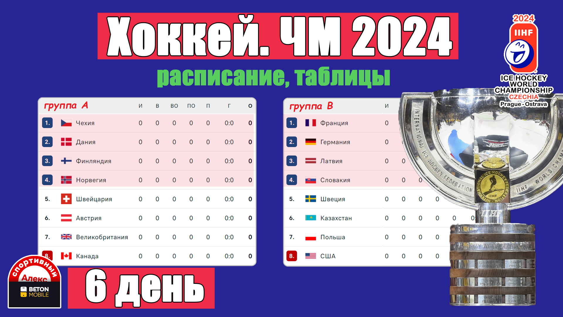 Чемпионат мира по хоккею 2024. День 6. Расписание. Результаты. Таблица.