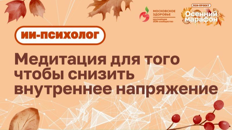 ⛔ Стоп, стресс! Это твоя 8-минутная перезагрузка!👇🏻 👉🏻 Специальная медитация, чтобы сбросить напряжение. ✔️ Новая медитация с ИИ-психологом. Искусственный интеллект, обученный и подготовленный реальным экспертом Александром Кудряшовым, врачом-психотерапевтом Центра ментального здоровья, экспертом Пси-Феста, поможет вам отключиться от суеты. ✅ Всего 8 минут. ✅ Прямо здесь, в нашей группе ВК. ✅ Поможет отключиться от суеты и шума в голове. ➡️ Подключайтесь! #стопстресс #перезагрузка #медитацияонлайн #психолог #тревога