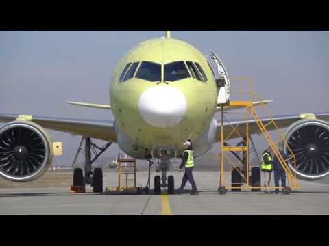 27 апреля 2019 г. опытный самолет МС-21-300, оснащенный пассажирским салоном, совершил беспосадочный перелет из Иркутска на аэродром «Ульяновск- Восточный». В Ульяновске самолет МС-21-300 будет окрашен по серийным технологиям, после чего перелетит на аэродром ЛИИ им. М.М.Громова «Раменское» (г. Жуковский, Московской области) для продолжения летных испытаний. Самолет пилотировал экипаж в составе Героя России, заслуженного летчика-испытателя Романа Таскаева и летчика-испытателя 1-го класса Василия Севастьянова. Роман Таскаев заявил: «Перелет прошел в штатном режиме, замечаний нет». ENG April 27, 2019 MC-21-300 test aircraft, equipped with a passenger cabin made the non-stop flight from Irkutsk to Ulyanovsk Vostochny airport. In Ulyanovsk, MC-21-300 aircraft will be painted according to production technologies, and then will fly to Ramenskoye airport (Zhukovsky, Moscow region) to continue flight tests. The aircraft was piloted by a crew of Hero of Russia, honored test pilot Roman Taskaev and 1st class test pilot Vasily Sevastyanov. Roman Taskayev said: "The flight was in normal mode, without complaint". Ulyanovsk enterprises are the largest participants of the MC-21 program. Aviastar-SP Plant produces fuselage panels, empennage and many other units for MC-21-300 aircraft. AeroComposit-Ulyanovsk Company produces the wing made of composite materials. The painting of MC-21-300 aircraft will be conducted by the Ulyanovsk company Spektr-Avia. The enterprises participating in the MC-21 program underwent technical re-equipment. The President of UAC Yuri Slyusar said: "The Irkutsk aviation plant has completed the assembly and systems installation of the fourth MC-21-300 flight test aircraft. Joining the third and fourth aircraft to flight tests will increase intensity of the certification program."