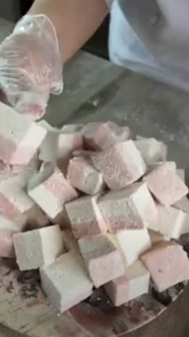 Автор видео: @sweet_fluff_ufa🙏❤️ ============= ✅ Если Вам понравилось наше видео и рецепт, будем очень рады, если Вы подпишетесь на наш канал, поставите 👍 и оставите комментарий для обратной связи, большое вам спасибо ❤️ ✅ Не забудьте включить колокольчик уведомлений 🔔, чтобы получать оповещение о новых видео после подписки на наш канал. ✅ Друзья, просмотрите видео до конца, если там присутствует технология приготовления, чтобы не упустить детали 👈 ============= Слово автора: 📌Рецепт кубиков маршмеллоу клубника- апельсин ✅Варить до 110-113°С (или 2-3 минуты после закипания на среднем нагреве): 20 г сока апельсина (или воды) 60 г пюре клубники 280 г сахара ✅Распустить: 80 г воды 15 г желатина (особое внимание силе желатина я не уделяю в этом рецепте, в прямом эфире использовала желатин силой 240 блум) ✅Добавить: 1/4 ч. ложки лимонной кислоты 1-2 чайные ложки цедры апельсина Процесс приготовления: 1️⃣Желатин замочить в холодной воде и тщательно размешать. 2️⃣ В сотейнике соединить апельсиновый сок, клубничное пюре и сахар. Довести сироп на среднем нагреве до температуры 110-113°С (или 2-3 минуты после закипания). Сироп необходимо помешивать. На самом деле ничего критичного не произойдёт, если вы немного не доварите или переварите сироп. Маршмеллоу все равно получится, просто консистенция будет либо более упругой, либо менее. 3️⃣ Когда сироп почти готов, распустить желатин. 4️⃣ В деже (миске для взбивания) соединить сироп, распущенный желатин и лимонную кислоту. Взбить до пышности, посветления и увеличения во объёме в 2-2,5 раза. 5️⃣ В готовый маршмеллоу положить цедру апельсина и перемешать лопаткой. 6️⃣ Горячий маршмеллоу залить в форму (размер моей рамки 15х30х3 см), остудить при комнатной температуре, затем убрать в морозильную камеру на 20-30 минут (так маршмеллоу легче нарезается). 7️⃣ Охлажденный маршмеллоу присыпать кукурузным крахмалом и нарезать на кубики. 8️⃣ Оставить маршмеллоу в окрахмаленном виде при комнатной температуре на 1-2 часа. Маршмеллоу уже готов к употреблению и, если вы не планируете его хранить, то можно и не сушить его. 9️⃣ Затем стряхнуть лишний крахмал с кубиков с помощью сита и убрать в контейнер с чуть приоткрытой крышкой ещё на 12 часов. 1️⃣0️⃣ Хранится такой маршмеллоу при комнатной температуре до 10 дней в закрытом контейнере или полиэтилене. Готовьте в удовольствие! 🤗 =======