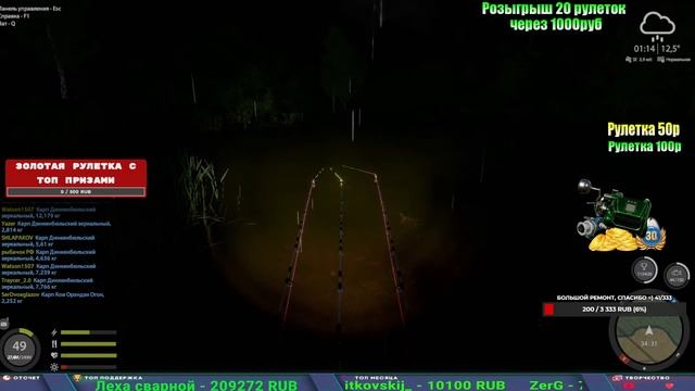 Поддержка донатом https://new.donatepay.ru/@1032463 Альтернативный донат https://www.donationalerts.com/r/kalyamba11 5536913964533059 карта Тинькоф Если стрим лагает,смотри стрим на трово https://trovo.live/s/Kalyamba_na_Ribalke Мой ВК - https://vk.com/kalyantv НИК в игре kalyan11 НАШ ДИСКОРД СЕРВЕР https://discord.gg/3ZeEDGs5h6 Заказ водоема на 1 час - 500р ( весь стрим 2500р ) Модерка на канале 1300р ( каждая следующая на 100р больше) ✅Призы в рулетке "ЗОЛОТАЯ" 500р ✔ ЗОЛОТО ✔ ПРЕМ ✔ КАТУШКИ РАПТОР 40, ВЕНГИ, ТАЙГА, СИЛЬВЕР 80, И другие ✔ ПАЛКИ ПИЛКЕРНАЯ, ДОНКА МОРСКИЕ, ✔ РОД ПОД, СТУЛЬЯ ✅Призы в рулетке СТАНДАРТ : 100р ✔ катушкИ РАПТОР 40, ВЕНГИ, ТАЙГА, СИЛЬВЕР 80, И другие ✔ катушки 60 для медного ( ЭВИИ, НАТОРЫ, ГОЛДА, и тд) ✔ ПИЛКЕРНОЕ УДИЛИЩЕ КОРОЛЕВА ОКЕАНА ✔ Морское Донное удилище ✔ прем ( 3, 7, 30 дней) ✔ золото ( 1, 3, 5, 10, 20 ,50) ✔ билет на море ( 1, 3, 5 дней) ✔ голд наживка и др. ✅Призы в рулетке "СТАРТОВАЯ" 50р ✔ катушка Венга ✔ катушка "silver80" ✔ катушка "БЕЛЫЙ КАЛИБР" ✔ катушка "Черный калибр" ✔ катушка "Протон" ✔ катушка "Нарга 6000" ✔ Набор Фидерист и спинингист ✔ Карповик Фортуна ✔ фидерные удилища ✔ прем, золото, алкашка, наживки и тд P.s Рулетка это не казино, а награда за поддержку стримера. Вечный ТОП ПОДДЕРЖКИ (10.06.2025) 1. Леха сварной 214 572 2. Dimon_pokemonchik 127 034 3. Skreb79 103 061 4. Interceptor 96 230 5. FishRus86 82 500