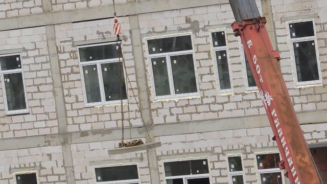 Автокран подает на стройку