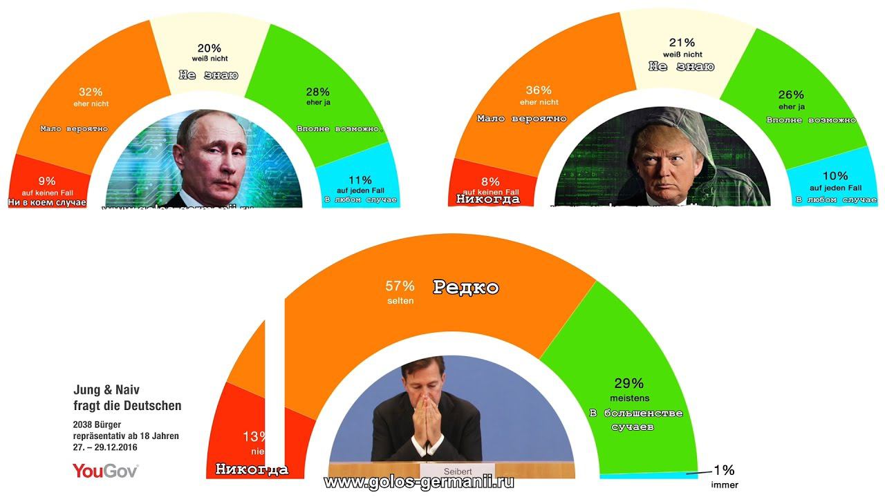 12.01.2017. Результаты опроса 2038 граждан Германии, проведённого в конце декабря 2016 года. Оригиналы на немецком: https://www.youtube.com/watch?v=XqTYAZ2_e_s&t=2s https://www.youtube.com/watch?v=quEKqNgphgw&t=99s https://www.youtube.com/watch?v=JKabHmHMlUo&t=17s Перевод с немецкого: Диана Одинцова и Полина Бузылева Ютуб-канал с сатирой и юмором с Германии - https://www.youtube.com/channel/UCC18r1TReldtnlFiJcyWLGw/videos Поддержать проект «Голос Германии»: Яндекс деньги: 410011568851437 PalPal: accord99@yandex.ru QIWI: +79832409471 Наш сайт - www.golos-germanii.ru Наши группы в соцсетях: https://vk.com/golosgermanii https://www.facebook.com/Голос-Германии-395377540622519 http://ok.ru/golosgermanii https://twitter.com/GolosGermanii