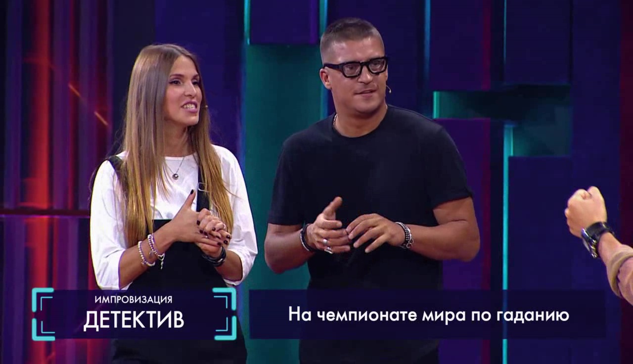 Семья Беляевых участвует в импровизации «Детектив». Они – начальники полицейского участка, к которым приходят сотрудники, чтобы рассказать о случившемся преступлении.