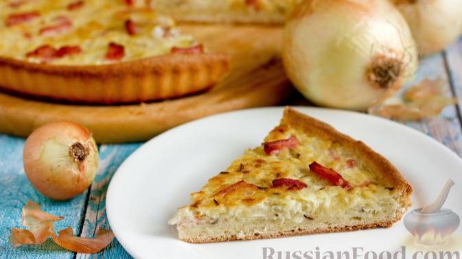Подаётся традиционно к пиву. НЕМЕЦКИЙ ЛУКОВЫЙ ПИРОГ С КОПЧЕНЫМ МЯСОМ