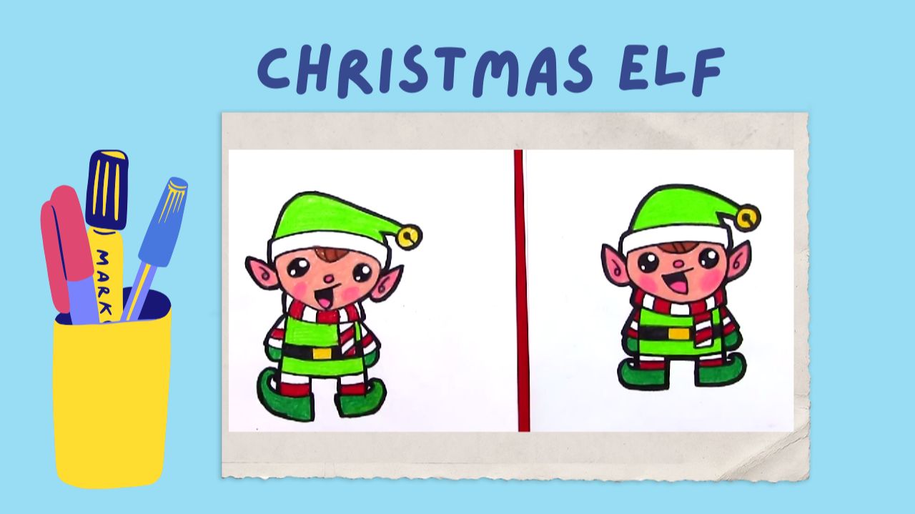 Let's draw a Christmas Elf together! Get a paper, pencil or marker and colored pencils or markers and follow the instructions. #Christmas #drawing #english