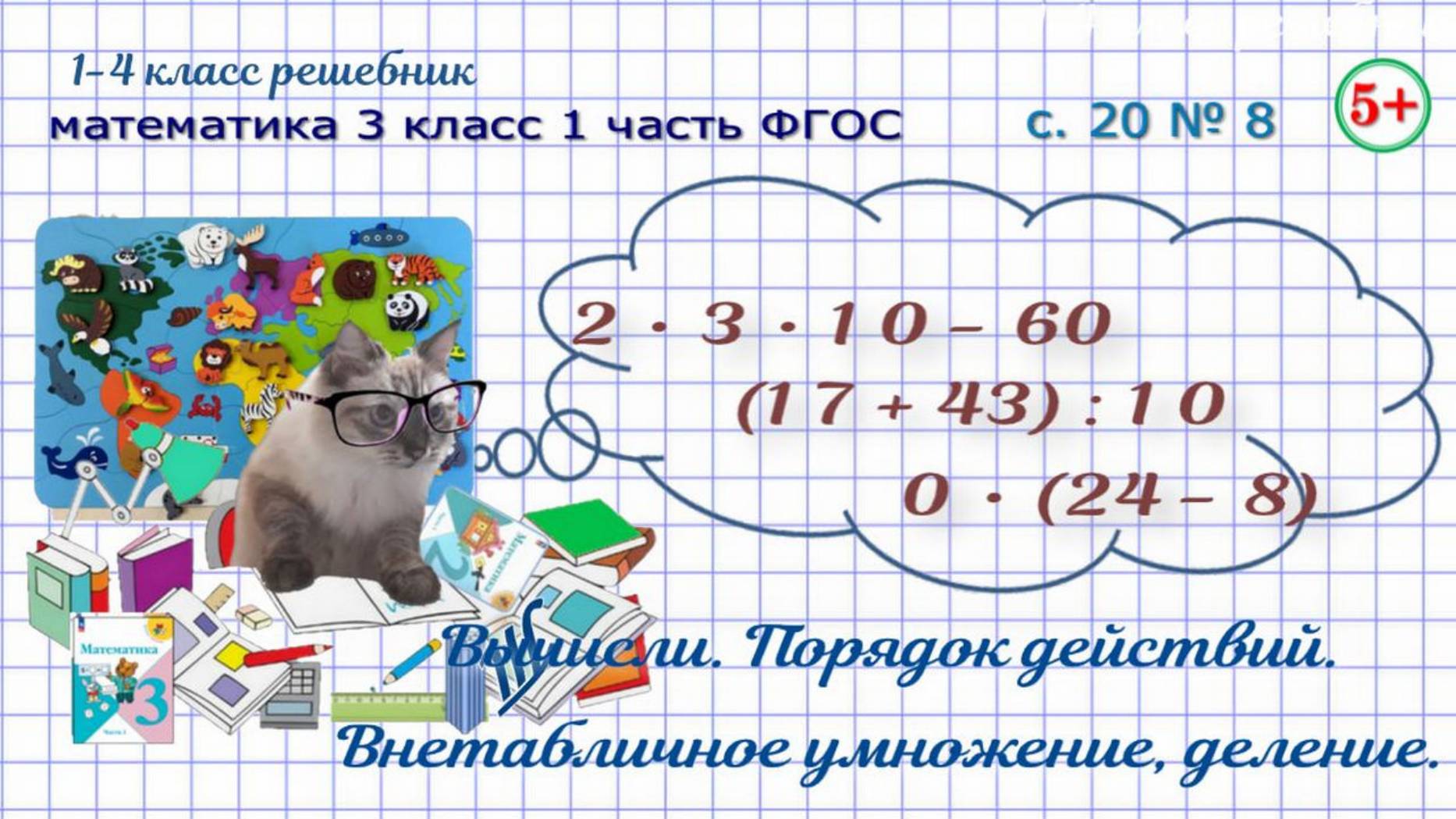 Стр. 20 № 8 вычисли: порядок действий, внетабличное умножение, деление математика 3 класс 1 часть