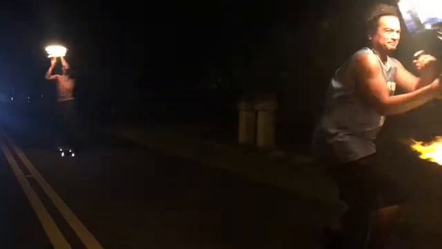 Fire knife dance on skate board