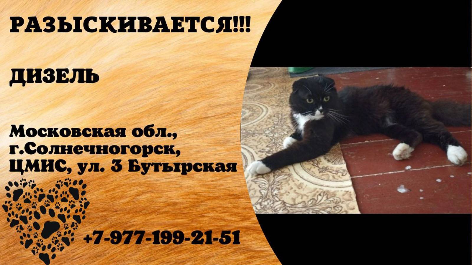 Пропал кот! ДИЗЕЛЬ. Московская обл, г. Солнечногорск