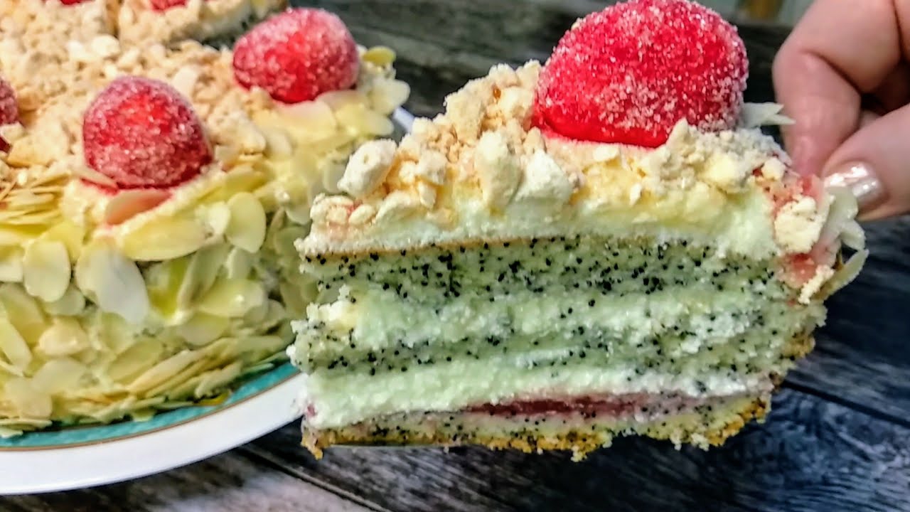 Очень вкусный торт с маком. Рецепт торта с нежным и воздушным бисквитом. Торт в меру сладкий. Ничего лишнего. Простой и не сложный рецепт торта. 📌Ваш лайк, комментарий лучший способ сказать мне спасибо за видео-рецепт! 🔖 Подписаться на канал можно здесь 👇https://rutube.ru/channel/37497788 Форма на видео 21 см. Тесто: 4 яйца 100 г. сахар 100 г. муки 50 г. мак 1️⃣4 белка с щепоткой соли взбить до пиков. 2️⃣Сахар добавить в насколько приемов. 3️⃣4 желтка добавлять по одному. 4️⃣Муку в три приёма. 5️⃣Затем мак. 🔥 Выпекать при температуре 170 градусов 40 минут. ✔️Дать остыть. Крем: 1️⃣ 1 яйцо 130-150 г. сахара ванильный сахар 2 ст.л. кукурузный крахмал цедра лимона или ванильный сахар по желанию ✔️ Хорошо перемешать 2️⃣400мл. горячего молока Влить за несколько приемов, постоянно помешивая в сухую смесь. 3️⃣Поставить на средний 🔥 и варить до пузырьков и загустения. ✔️Остудить. 4️⃣200 г. Сливочное масло, мягкое, взбить до пышного состояния и в 4 приема добавить заварной крем. Сироп: 120 мл. Молока 3 ст.л. сахара 1️⃣ Смешать и подогреть до растворения сахара. ✔️Остудить. 1. Бисквит разрезать на 3 части. 2. Пропитать сиропом 3-4 ложки на корж. 3. Крем разделить на 4 части: слои между коржами, верх и бока торта. 🍓🍓🍓Джем используем по желанию, но с ним очень вкусно. https://rutube.ru/video/3245a035848514f48dcd32b6339e1b60/ ✔️Можно украсить, как у меня на видео торт Поль Робсон. Будет весь торт белый, а завитушки посыпать маком. ✔️Можно украсить свежей 🍓 клубникой, красиво и очень вкусное сочетание. Приятного аппетита! Ссылка на украшение🍓🍓🍓 в видео https://rutube.ru/video/f6ae3f0c496d452004ac41fb48d5b7a9/ #тортрецепт #торт #домашнийторт #тортсмаком