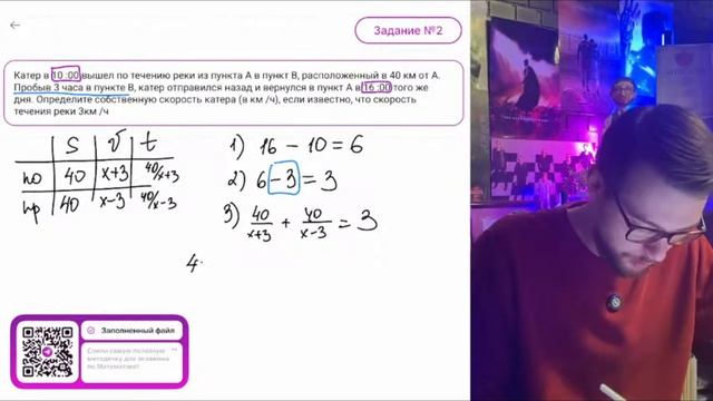 Катер в 10:00 вышел по течению реки из пункта А в пункт В, расположенный в 40 км от А.-№12520