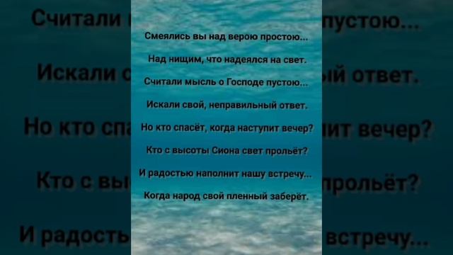 ХРИСТИАНСКИЕ ПЕСНИ ДЛЯ ХВАЛЫ ПОКЛОНЕНИЯ ПРОСЛАВЛЕНИЯ ЕВАНГЕЛИЗАЦИИ ДУХОВНОГО РОСТА ПРОБУЖДЕНИЯ ВОЗРОЖДЕНИЯ #господь#музыка#христианская_музыка#музика#христианскиепесни#бог#христианскиестихи#любовь#христианство#стихи#песня#песни#иисус#иисусхристос#иисусмойбог#иисус_христос#иисусбог#иисусгосподь#хвалы_и_поклонения#хваление#хвала#прославление#духсвятой#духовныйрост#духовноепробуждение#духовность#евангелие#евангелизация#евангельскаявесть#духовный_рост#пробуждение#рождество#рождествохристово#божий#божийнарод#божьеслово  #ХристианскаяПесня #ХристианскоеПоклонение #ХристианскаяНоваяПесня #ПастырьМоейДушы #ХристианскаяМузыка #ПесняСлавы #Иисус #ЛюбовьБожья #ХристианскиеТексты #СлаваГосподу #ВераИПоклонение #ВечнаяЛюбовь #RussianChristianSong #RussianChristianWorship #RussianChristianMusic #RussianWorship #NewRussianChristianMusic  #RussianChristianMusic #RussianSongOfPraise #Jesus #GodsLove #ChristianLyrics #GloryToGod #RussianFaithAndWorship #EternalLove #Пасха #Воскресение #ХристосВоскрес #пробуждение #возрождение https://stihi.ru/avtor/zhanna70 "ТВЕРДЫНЯ ПОД НОГАМИ!" СЛОВА, МУЗЫКА, ОБРАБОТКА:  ЖАННА ВОЛКОВА-ВАРЛАМОВА https://stihi.ru/2025/07/24/5028 Стихи Жанна Юрьевна Волкова-Варламова Вступление: Сказал безумец в сердце своём: - Нет Бога.  И, выбрал путь из тысячи дорог...  Но, без итога. 1 Куплет Господь с Небес призрел на этот мир...  Ища хоть одного, кто сердцем зрячий. Но, каждый сам себе устроил пир...  Забыв о Нём, решая все задачи. Все уклонились, стали как один...  И, нет добра в поступках и в словах. И, каждый в жизни сам свой господин...  Не видя в небесах грядущий страх. Припев: Скала моя... Твердыня под ногами...  Как тяжек путь во бремени Твоём. Но знаю, что без Тебя я, словно таю...  И, мы вдвоём спасение найдём!  Ведь иго Твоё благо, бремя легко...  И в этом сила, вера и покой. Пусть до спасенья кажется далеко...  Я всё пройду, ведомый лишь Тобой!!!  2 Куплет Смеялись вы над верою простою...  Над нищим, что надеялся на свет. Считали мысль о Господе пустою...  Искали свой, неправильный ответ. Но кто спасёт, когда наступит вечер? Кто с высоты Сиона свет прольёт? И радостью наполнит нашу встречу...  Когда народ свой пленный заберёт. Припев: Скала моя... Твердыня под ногами...  Как тяжек путь во бремени Твоём. Но знаю, что без Тебя я, словно таю...  И, мы вдвоём спасение найдём!  Ведь иго Твоё благо, бремя легко...  И, в этом сила, вера и покой. Пусть до спасенья кажется далеко...  Я всё пройду, ведомый лишь Тобой!!!  3 Куплет Вы посмеялись над душою нищей...  Что в Господе надежду обрела. Вы ищете богатства, власти, пищи...  А, ей нужна лишь капелька тепла. Кто даст с Сиона помощь и спасенье...  Когда народ из плена возвратит?!  Наступит радость, мир и утешенье...  И, Бог свой род навеки сохранит!!!  Припев: Скала моя... Твердыня под ногами...  Как тяжек путь во бремени Твоём. Но знаю, что без Тебя я, словно таю...  И, мы вдвоём спасение найдём!  Ведь иго Твоё благо, бремя легко...  И, в этом сила, вера и покой. Пусть до спасенья кажется далеко...  Я всё пройду, ведомый лишь Тобой!!!  23.07.2025 Жанна Волкова-Варламова