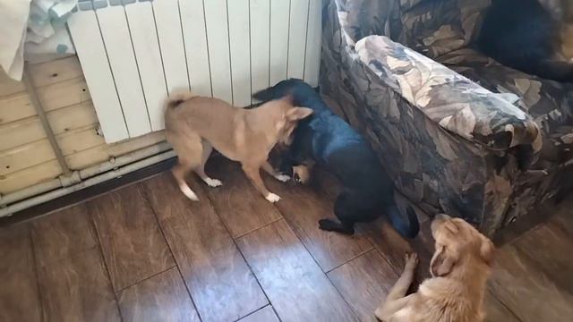 Щенки с радостью играют в доме