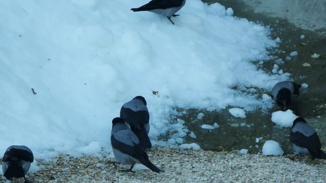 Молодые вороны первый раз видят снег