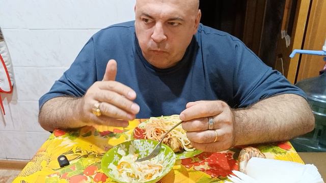 Мукбанг. Куриный шашлычок, спагетти и квашенная капуста. Локо-РОСТОВ 3:2, судья козёл убил интригу.