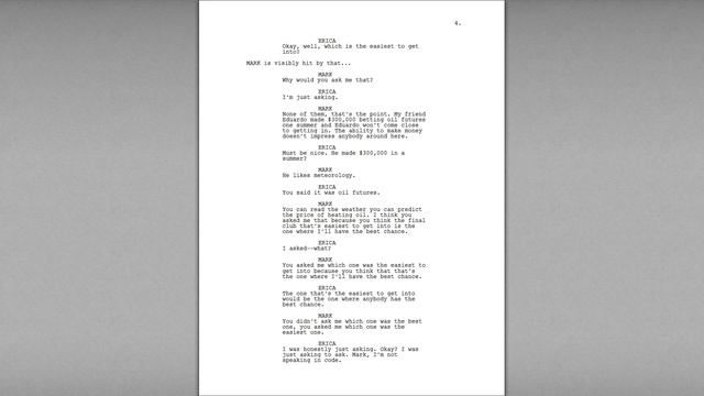 Script: "The Social Network" by Aaron Sorkin. My review of the first scene.