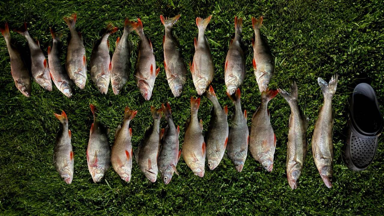 Раскрутили окуня на поклевки. Дуплеты в ассортименте. Штиль внес свои коррективы.