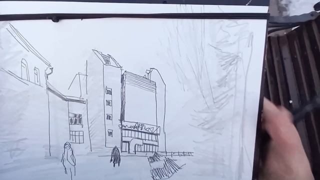 Городская зарисовка Real time Drawing and Teaching UrbanSketch Pencil digital color 24.03.2023
