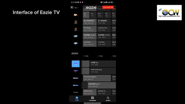 Eazie.TV user interface on android mobile phone