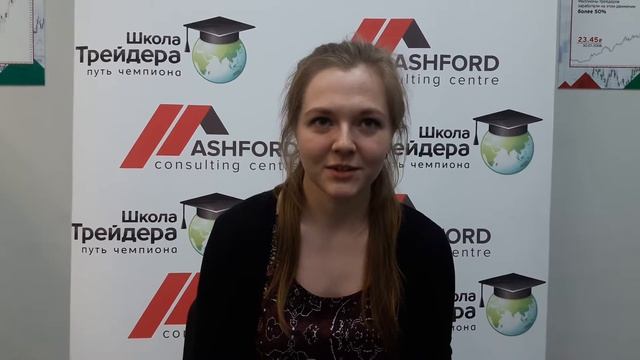 Здравствуйте, меня зовут Перхурова Анастасия, я хотела рассказать, как я попала в эту компанию. Мне позвонили по телефону и сказали, что я выиграла бесплатный сертификат. Там выбирали из 1000 номеров и выбрали 100 номеров, мой номер оказался выигрышным. Я пришла в офис, мне подробно объяснили, как будут проходить курсы и что это за курсы вообще. Мне стало интересно, потому что моя сфера совершенно другая, я учусь на историческом факультете и с экономикой практически не знакома. Мне показалось это довольно интересным, всё-таки это и в будущем пригодиться, и для общего развития полезно. Понравилось то, что обучение проходит в свободной форме, то есть объясняют всё очень доступно, и даже какие-то непонятные моменты ты можешь уточнить, тебе их сразу же вообще легко объяснят. Даже, если поначалу что-то не понимаешь, всё пролетает мимо головы, то потом это усваивается, повторяется много раз. Вообще, обучение очень интересное, атмосфера здесь довольно дружелюбная, открытая, постоянно какое-то движение происходит. Это очень ново для меня, узнала очень много каких-то непонятных слов, которые когда раньше слышала, думала, мол, что это такое. Сейчас это уже более-менее понятно и даже, если в новостях кто-нибудь выступает, какой-нибудь аналитик, которого я, конечно же, не знаю, но слова я уже знакомые слышу, как раз эти курсы и дают вот это, образование дополнительное. Мне пока всё очень нравится, посмотрим, что будет дальше.