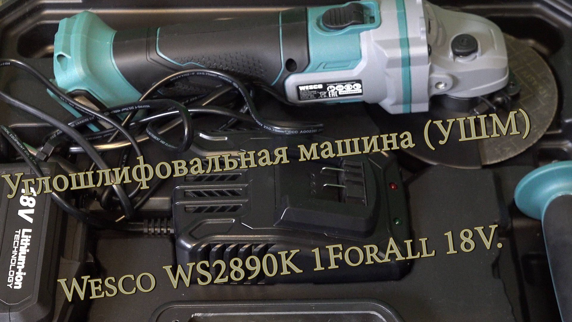 Аккумуляторная углошлифовальная машина (УШМ) Wesco WS2890K 1ForAll 18V. Обзор и распаковка