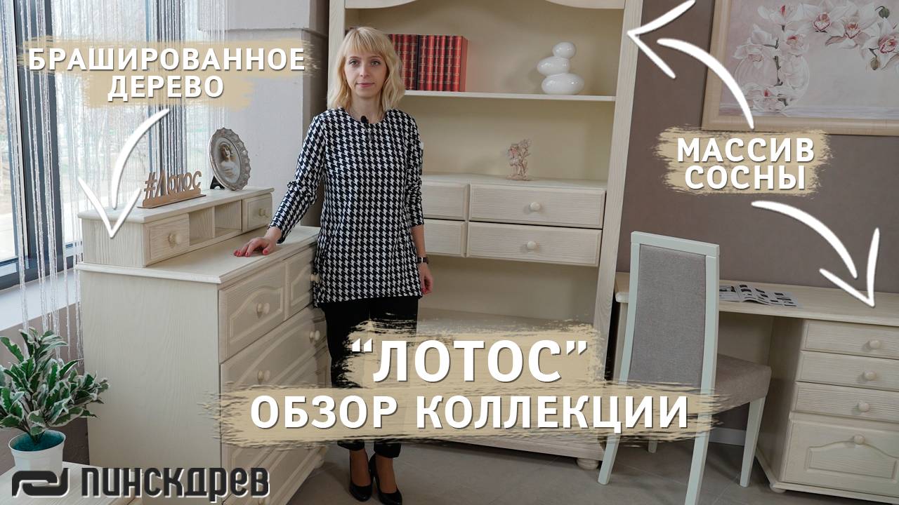 Лотос - коллекция из массива сосны, материала красивого, долговечного, прочного и натурального. В коллекции представлены модули для гостиной, столовой, детской комнаты и спальни. Вы сможете выбирать не только из модулей, но индивидуально подбирать крашение. В "Лотосе" их три - «сосна натуральная», «искусственное старение», «брашированный крем» . Эту коллекцию узнает каждый, как только один раз увидит наш обзор - плавные формы, узнаваемая текстура сосны, добротность и особая атмосфера уюта оставят неизгладимый след в вашем сердце. Просто посмотрите наш обзор и вы поймете, о чем мы! А еще пишите комментарии: какие модули вам понравились больше всего? - Коллекция Лотос https://pinskdrev.by/collections/lotos/ - Спальня «Лотос» # 4 https://pinskdrev.by/catalog/korpusnaya-mebel/mebel-dlya-spalni/spalnya-lotos---4/ - Столовая «Лотос» # 2 https://pinskdrev.by/catalog/korpusnaya-mebel/naboryi-dlya-stolovoy/stolovaya-lotos---2/ - Набор для детской «Лотос» https://pinskdrev.by/catalog/korpusnaya-mebel/mebel-dlya-detskoy/nabor-dlya-detskoy-lotos/ - Набор для детской «Лотос» #2 https://pinskdrev.by/catalog/korpusnaya-mebel/mebel-dlya-detskoy/nabor-dlya-detskoy-lotos--2/ Акция для РФ (с 01 апреля 2022 по 30 апреля 2022): Теплые скидки https://pinskdrev.ru/stocks/teplyie-skidki/ Смотрите также: - Спальня Лотос https://youtu.be/1hUw_LDV5n4 - Спальня Пинскдрев: https://www.youtube.com/watch?v=C3TOCY0vWTI&list=PLLpUwSCCfvKWXtiDdLlYTWl7a5Z2wdu1s - Детская Пинскдрев: https://www.youtube.com/watch?v=C3TOCY0vWTI&list=PLLpUwSCCfvKU20tUQ71xxY3oqbslch2PH - Гостиная Пинскдрев https://www.youtube.com/watch?v=nmsE2gonsfE&list=PLLpUwSCCfvKV2BNVlMrCnm7mBlyVbA1VS - Прихожая https://www.youtube.com/watch?v=nmsE2gonsfE&list=PLLpUwSCCfvKVokI1JhE_fsMNSoyb8fZUi - Мягкая мебель https://www.youtube.com/watch?v=tLlVz7Hl_BM&list=PLLpUwSCCfvKWKnQ3BxDg9Bz3g_mES75qQ ============================================ Акции: https://pinskdrev.by/stocks/ Распродажа: https://pinskdrev.by/stock/ Магазины Пинскдрев: https://pinskdrev.by/shops/ Интернет-магазин Пинскдрев: * Беларусь: https://pinskdrev.by/ * Россия: https://pinskdrev.ru/ * Казахстан: https://pinskdrev.kz/ Следите за новостями в наших сообществах: * Инстаграм: https://www.instagram.com/pinskdrev.by/ * Телеграм: https://t.me/pinskdrev_by https://t.me/pinskdrev_russia * ЯндексДзен: https://zen.yandex.ru/id/5facebe1c7e46b2d1cea2567 * Пинтерест: https://www.pinterest.ru/pinskdrevpinterest/ * Вконтакте: https://vk.com/clubpinskdrev https://vk.com/pinskdrevrussia * Фейсбук: https://www.facebook.com/pinskdrevby/ * Одноклассники: https://ok.ru/pinskdrev * YouTube канал Ritmo https://www.youtube.com/channel/UCAy1Sp-MIYLE6-ILVru-JYA * RuTube: https://rutube.ru/channel/24606256/ * BiliBili: https://space.bilibili.com/2097346046 Музыка: https://tunetank.com/tracks/5765_love-intentions_by_alexey-anisimov Мебель из Беларуси #Мебель #ПинскДрев #Лотос #Массив #Спальня #Детская #Столовая