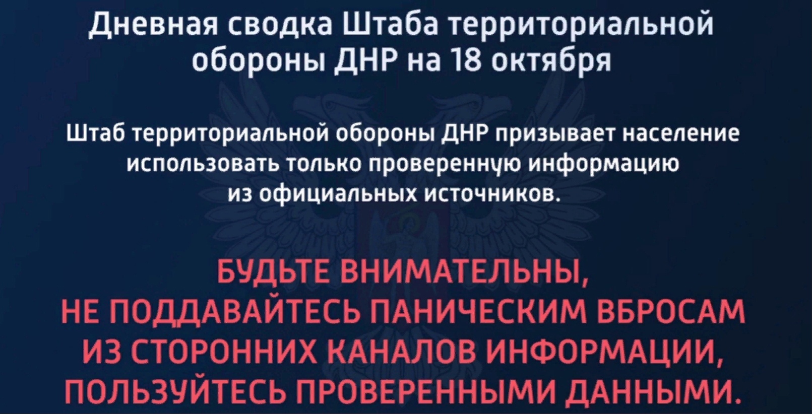 Дневная сводка Штаба территориальной обороны ДНР на 18.10.2022