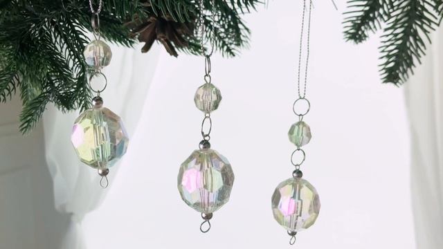Набор ёлочных украшений ХРУСТАЛЬНЫЕ РОСИНКИ, пластик, перламутровый, 9 см, 3 шт., AKP104310-2