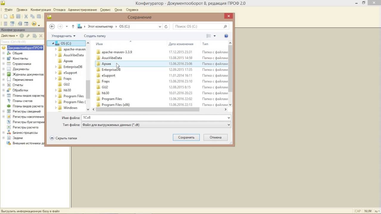 Как выгрузить информационную базу из 1С:Предприятия?