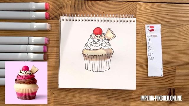 Рисунок скетч маркерами "Пирожное" для скетчбука | Срисовка картинки для начинающих