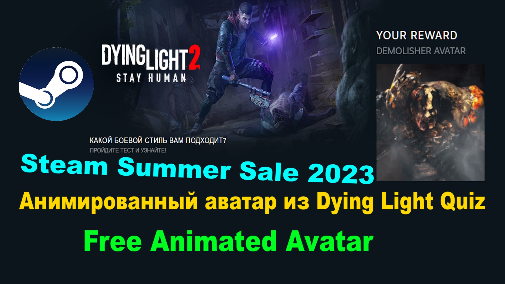 Бесплатно Анимированный аватар из Dying Light Quiz - Steam Summer Sale 2023/Летняя распродажа 2023