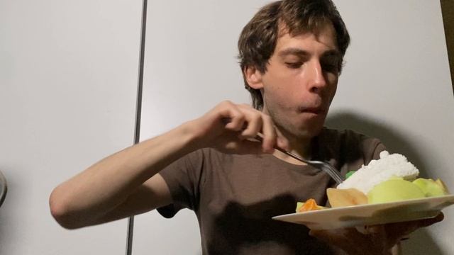Первый приём пищи в новом году: фрукты + торт