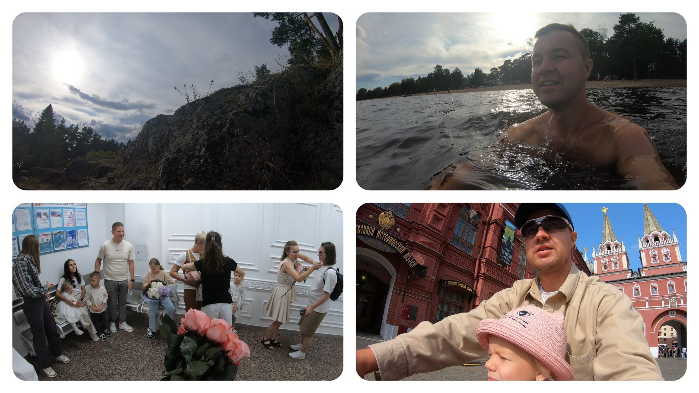 Румтур гостиницы Северной в Петрозаводске Пообедал в ресторане с названием "В Карелии есть" Залез на Чёртов стул Искупался в Онежском озере Побывали на выписке у Каргаполовых Поздравили Влада с Днем Рождения Покатались с Милкой по Москве на велике