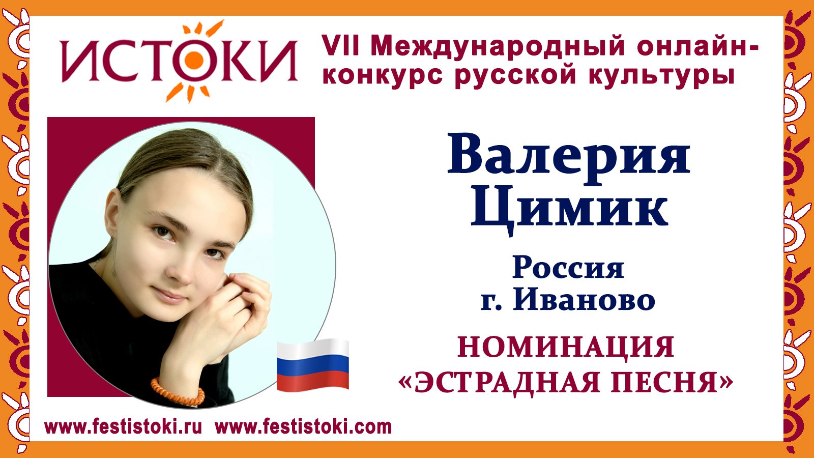Участник VII Международного онлайн-конкурса русской культуры "Истоки". Номинация "Эстрадная песня". Песня "Песенка о медведях". Композитор Александр Зацепин, слова Леонида Дербенева. Сайт: www.festistoki.ru / www.festistoki.com E-mail: festistoki@mail.ru