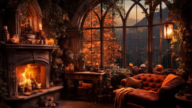 Релакс;Уютная осенняя атмосфера;с расслабляющей музыкой и звуками камина для сна
