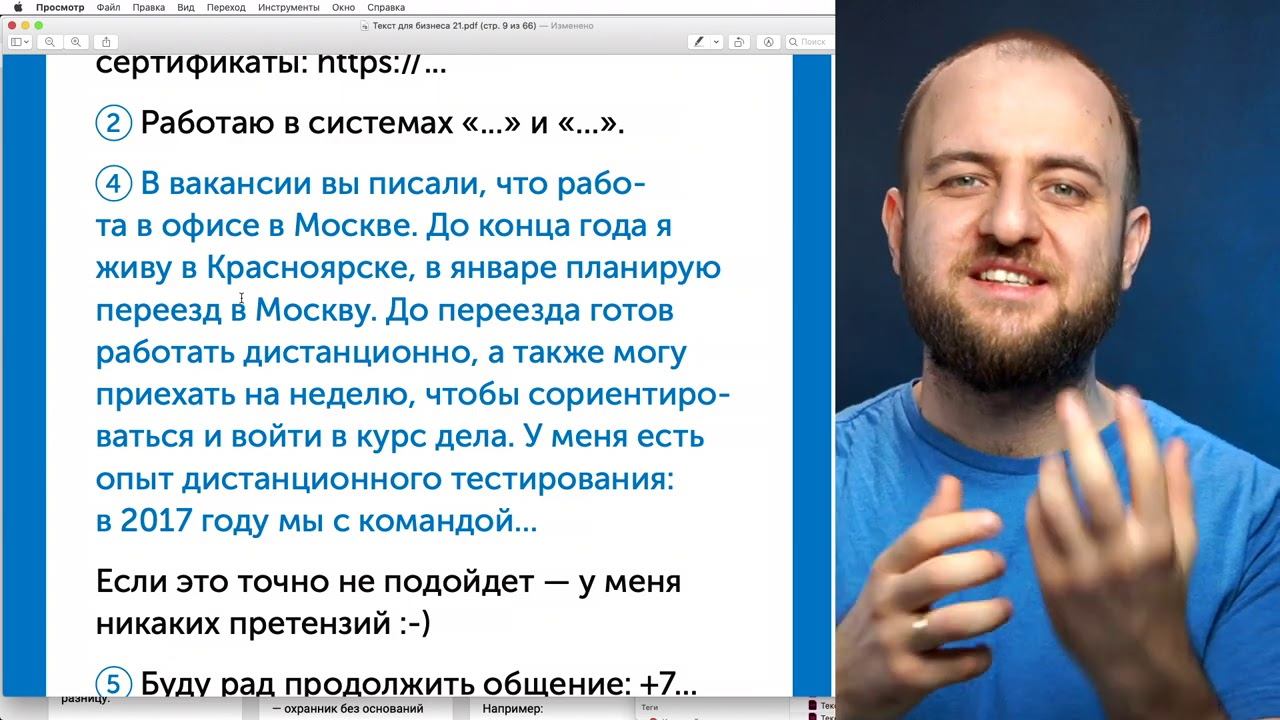 Купить шаблоны текста для работы и бизнеса: у издательства — https://www.alpinabook.ru/catalog/book-641353/ на «Озоне» — https://www.ozon.ru/product/shablony-teksta-dlya-raboty-i-biznesa-kommercheskie-predlozheniya-pisma-sotrudnikam-i-klientam-184972216/ Wildberries — https://www.wildberries.ru/catalog/14718040/detail.aspx?targetUrl=ES 00:00 Карточки с шаблонами текста 00:32 Что такое отклик на вакансию 01:14 Стереотип, что есть шаблон отклика 01:52 Структура отклика 03:24 Главная возможная ошибка 04:23 Пример отклика 11:05 Неадекват 11:48 Вывод
