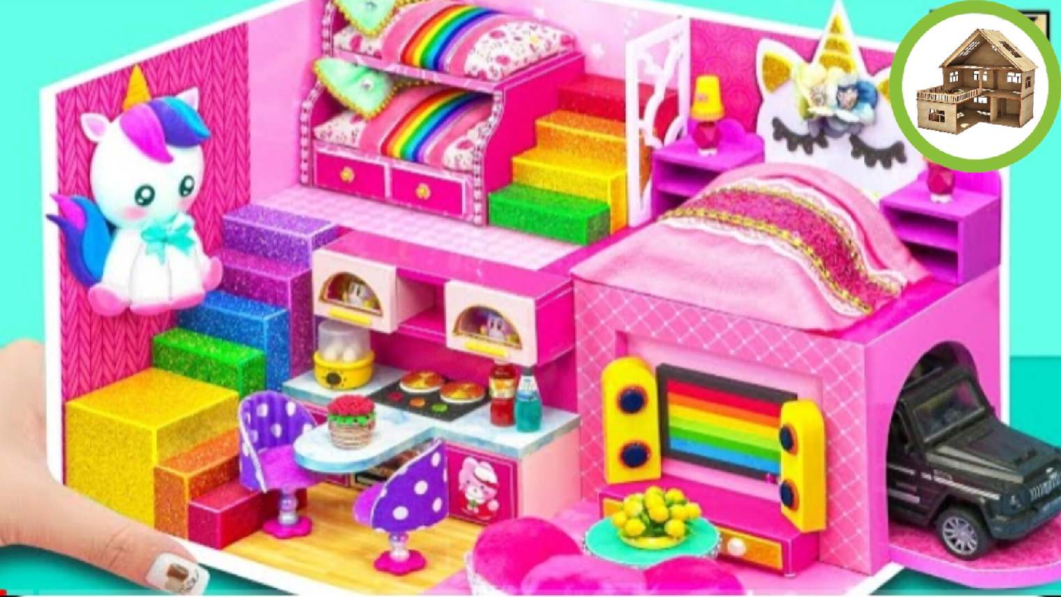 Двух этажный домик единорога с двумя спальнями и двухъярусной кроватью из кортона своими руками #38