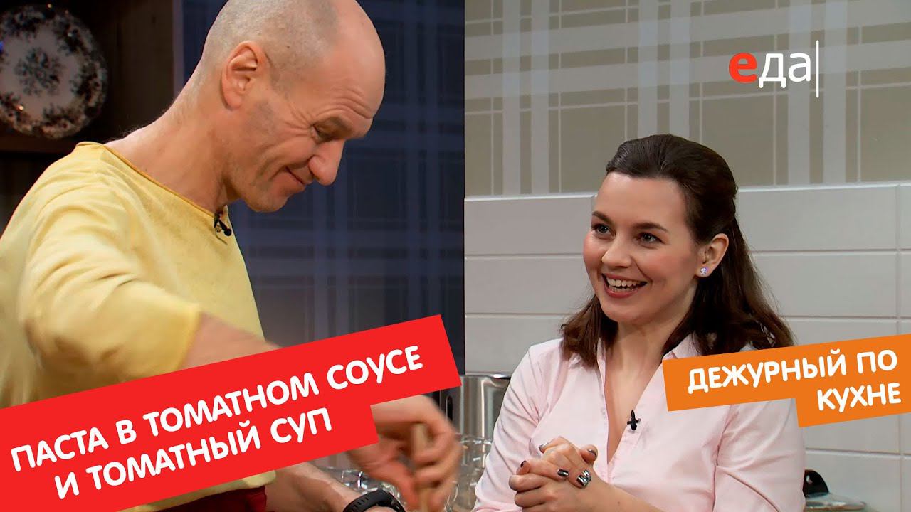 Паста в томатном соусе с белыми грибами и томатный суп с хлебными палочками | Дежурный по кухне