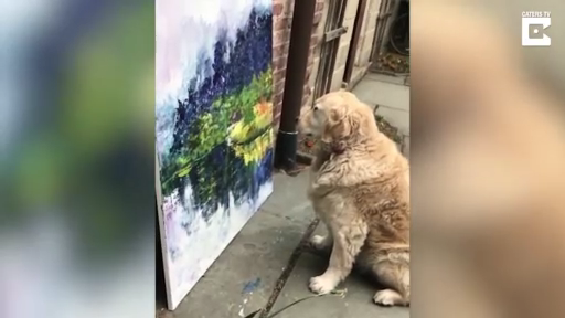 Шесть-летний золотистый ретривер, с тоской смотрит на картины. #прикол #собаки #картины #реакция #забавно