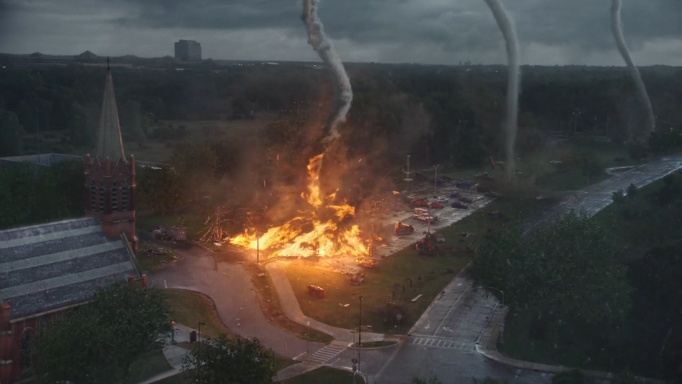 Маленький город Сильверстоун оказывается уничтожен нашествием торнадо. Но метеорологи сообщают, что это только начало. В центре сюжета охотники за торнадо, которые гоняются за бурей ради красивых снимков. #НавстречуШторму #IntoTheStorm vk.com/RuTreler
