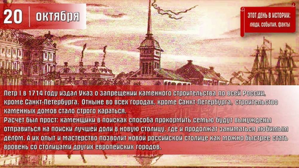 Указ Петра1 о запрещении каменного строительства по всей России, кроме Санкт-Петербурга