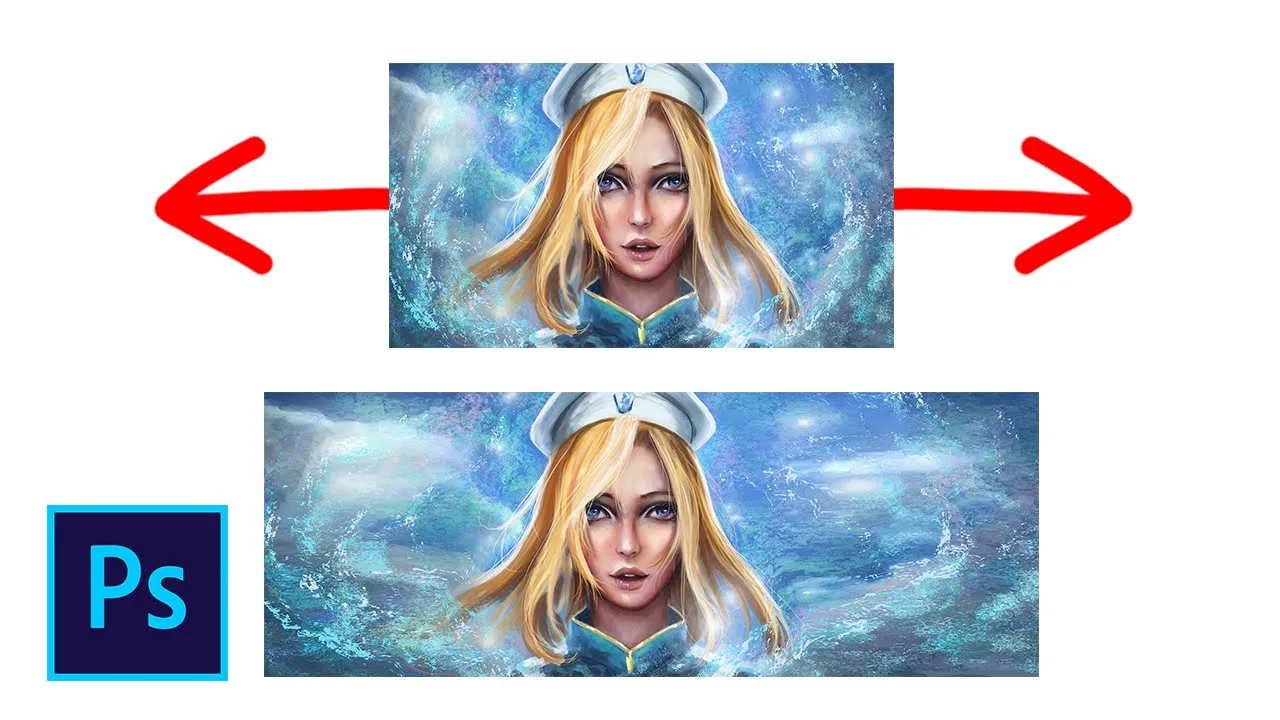 Как растянуть фон картинки (масштаб с учётом содержимого) в фотошопе