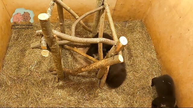 Ну что же, пожалуй, можно сказать, что тренажер начал «работать»! Хотя пока медвежата все же больше предпочитают возню друг с другом, ведь так приятно покусать лапы да бочка брата или сестры!