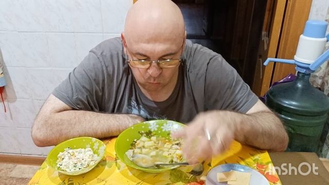 Мукбанг. Вермишелевый суп, крабовый салат, сыр и дорогая колбаса. О "Спящей царевне" из СССР.